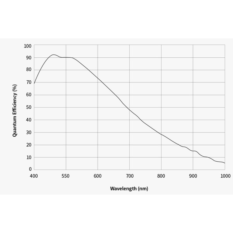 • QE (eficiencia cuántica): según los resultados de las pruebas de ZWO, el valor máximo de QE de la ASI2600MC Air es superior al 91 %.