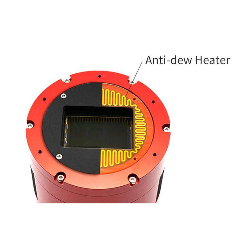 Calentador antimoho: La cámara ASI2600MM Duo contiene un calentador de poliimida. Puede ayudar a evitar posibles problemas con el rocío o la formación de hielo, dependiendo del entorno en el que esté tomando las fotografías. La potencia del calentador es de unos 5 W. Puede apagarlo en cualquier momento si desea ahorrar energía.