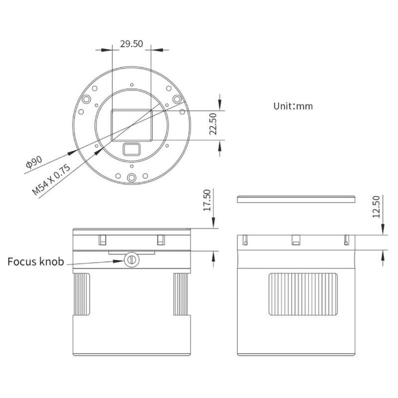 La ASI2600MM Duo Mono combina sensor de imagen y de guiado en una carcasa compacta. El sensor principal es el Sony IMX571 con un ADC nativo de 16 bits, un rango dinámico de 14 f-stops y Pixeles cuadrados de 3,76 micrómetros. El ruido de lectura es de sólo 1,0 e, y la capacidad del pozo lleno alcanza el increíble nivel de 80 ke. ¡Y todo ello sin brillo del amplificador!