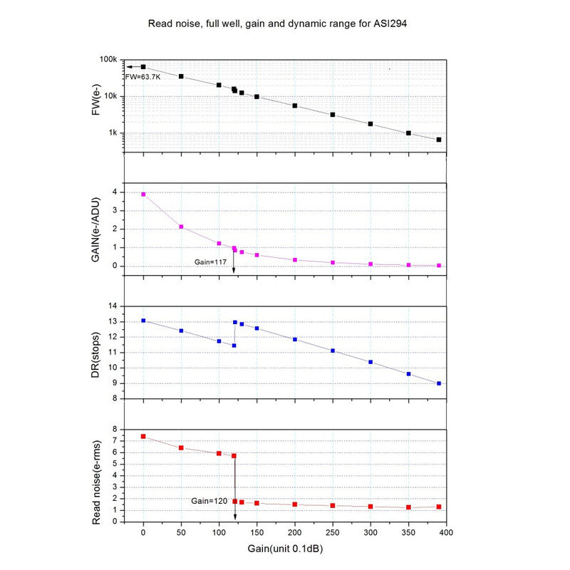 • HCG mode: when the gain (pre-amplification) is over 120 (12 dB), the read noise is reduced below 2e, so you will get low noise images despite the high sensitivity.