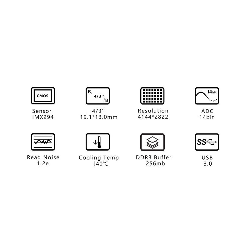 ASI Pro cameras are equipped with 512MB internal DDR3 memory that ensures secure data transfer and reduces the so-called Amp-Glow, which can occur when data is transferred at low speed with USB 2.0.
