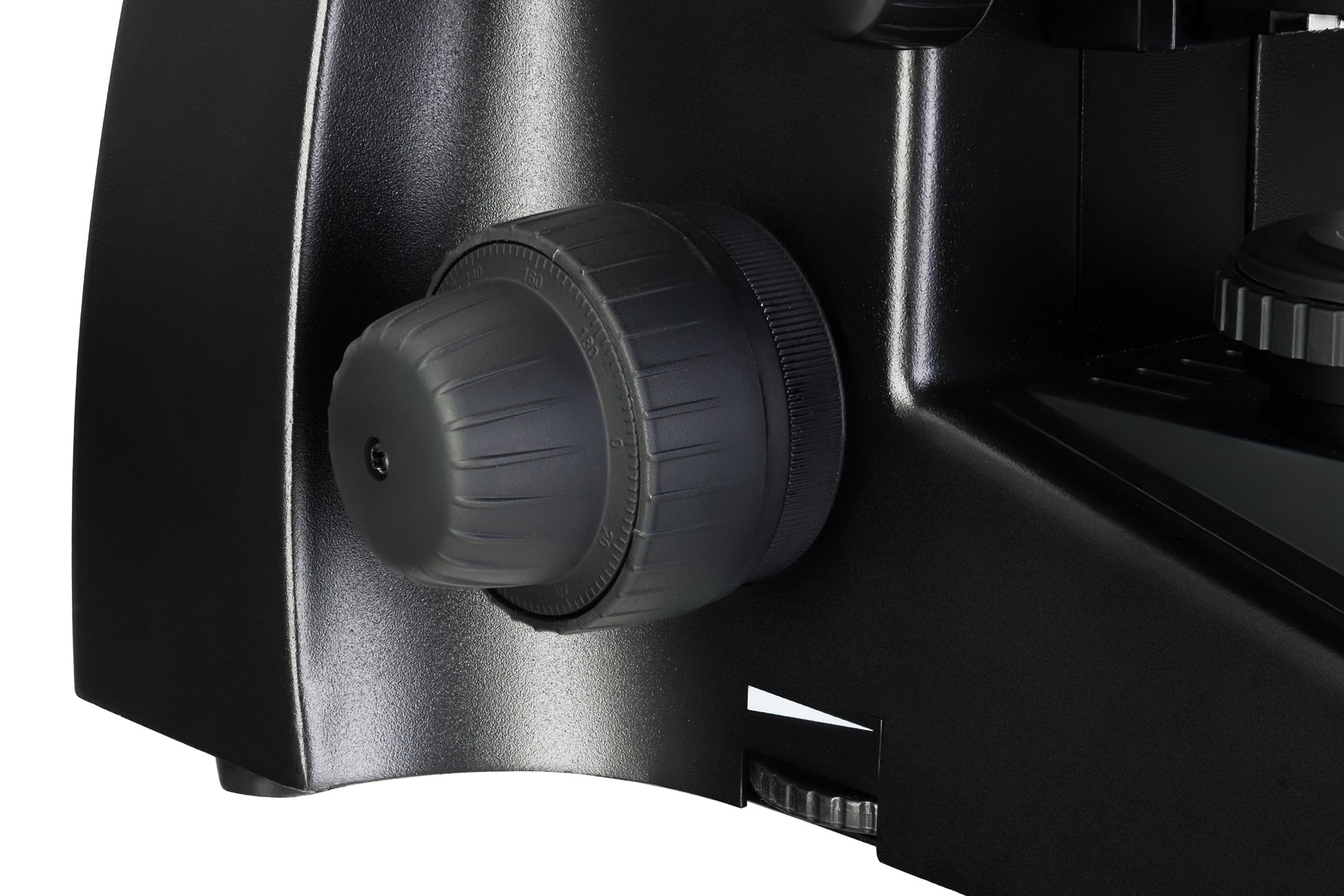 The rotating trinocular head is comfortable for professional researchers who spend significant time examining samples. The user can look through the eyepieces with both eyes, greatly reducing eye strain. Furthermore, the eyepiece tubes can be separated according to the most comfortable distance for the user. The rotating 4-objective nosepiece is inward-facing, so during observations the user can see the objective located in the optical path. The objectives included in the kit are plan achromatic, and the eyepieces have a wide field of view.