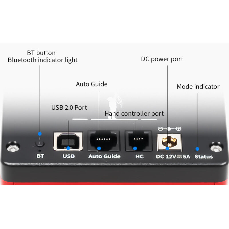 • Consumo de energía actualizado: para mejorar la estabilidad de la carga, se ha ajustado el consumo de energía de la siguiente manera: 1. Modo de seguimiento: 12 V / 0,7 A 2. Modo Goto: 12 V / 1,3 A (hasta 1,8 A con carga elevada)