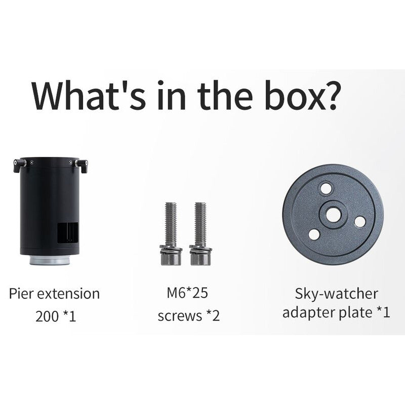 Este alargador de mástil ZWO se puede conectar a las monturas AM3 o AM5 para añadir altura adicional a su equipo.