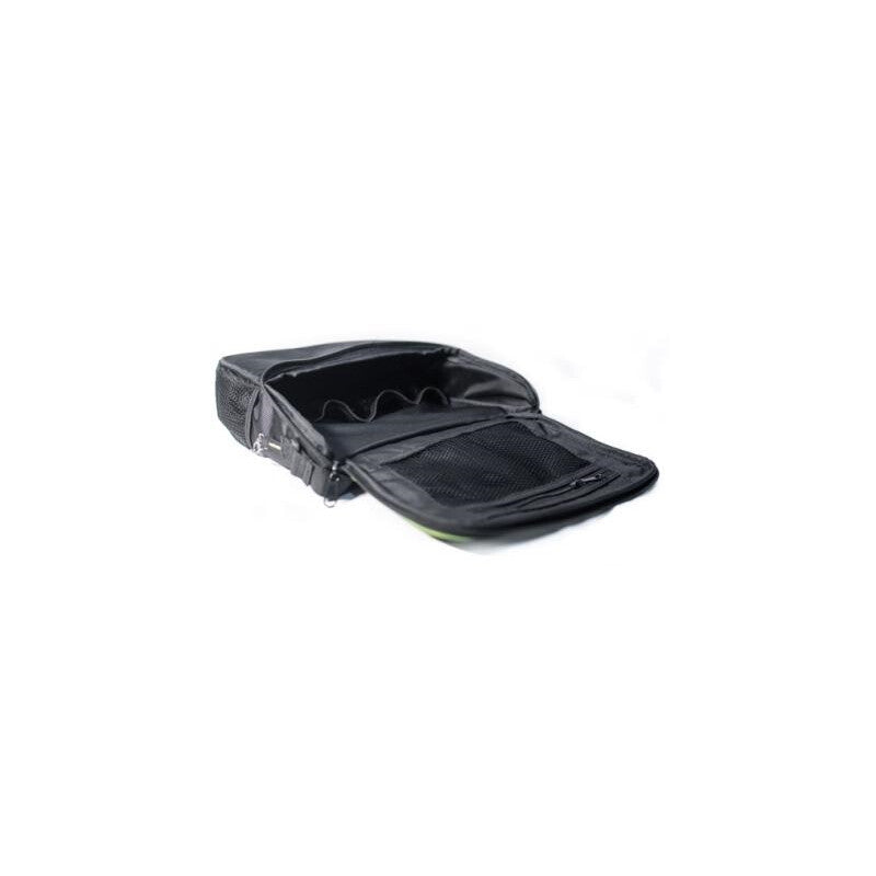 Las asas están acolchadas y colocadas sobre el centro de gravedad de la bolsa, por lo que el estuche quedaequilibradoy es muy cómodo de transportar. Algunos modelos también tienen una correa para el hombro que se sujeta con un robusto mosquetón de metal.