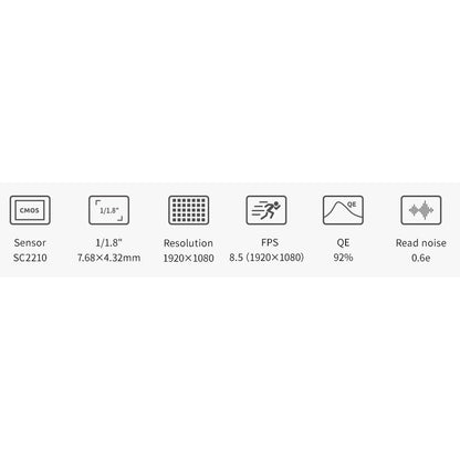 Gracias a los pequeños píxeles de 2,9 µm, se consigue una resolución muy alta a partir de una relación de apertura de f/10, lo que hace innecesario el uso de lentes de barlow.
