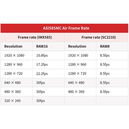 Una ventaja del sensor CMOS retroiluminado es el menor ruido de lectura y la mayor sensibilidad. Sony utiliza especialmente la tecnología STARVIS 2 en el sensor IMX585, que garantiza una excelente visibilidad con poca iluminación. Puede conseguir un rendimiento lumínico muy alto en fotografías astronómicas y obtener una alta calidad de imagen no solo en la luz visible, sino también en el rango del infrarrojo cercano (para reducir el seeing). Además, el bajo ruido de lectura y la alta capacidad de pozo completo garantizan un mayor rango dinámico. En combinación con el amplio campo de visión que ofrece el gran formato del sensor, la ASI585MC no solo es ideal para fotografiar el sol, la luna y los planetas, sino que también se puede utilizar como cámara de transmisión en directo.