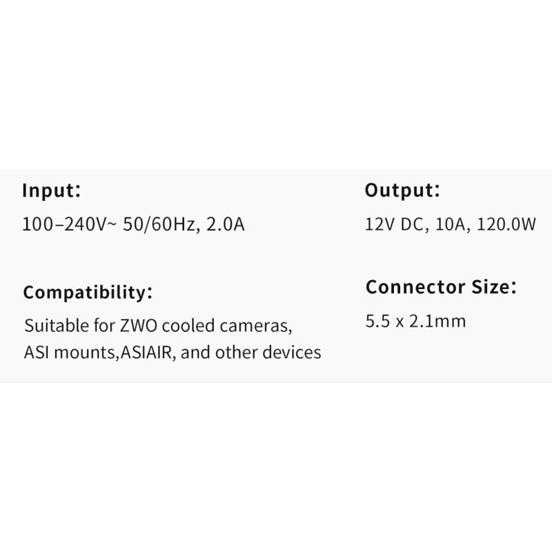 Alimentación para la refrigeración de cámaras de ZWOptical.