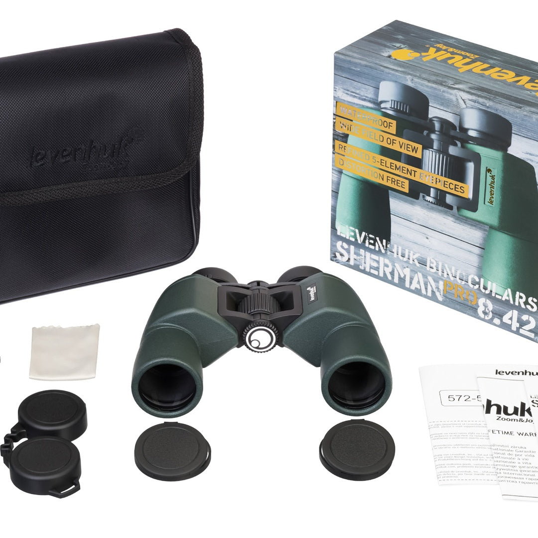 Los prismáticos Sherman PRO son fiables y resistentes y producen una imagen plana perfecta, y son la elección perfecta para las personas a las que les gusta viajar mucho, salen de excursión y, a veces, por el camino, se encuentran en condiciones duras y extremas. El cuerpo rugoso de estos prismáticos protege el intrincado sistema óptico del interior de cualquier impacto repentino y de la humedad. Estos binoculares se pueden usar llevando gafas.