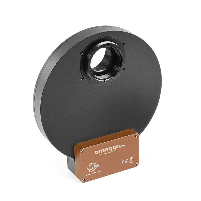 Mejora tu flujo de trabajo en fotografía astronómica con la Rueda de Filtros Electrónica (EFW) Omegon Pro. Diseñada tanto para astrónomos aficionados como para astrofotógrafos experimentados, esta rueda de filtros motorizada está diseñada de manera amigable para el usuario y hacer de tu configuración una observación estelar lo más simple posible.