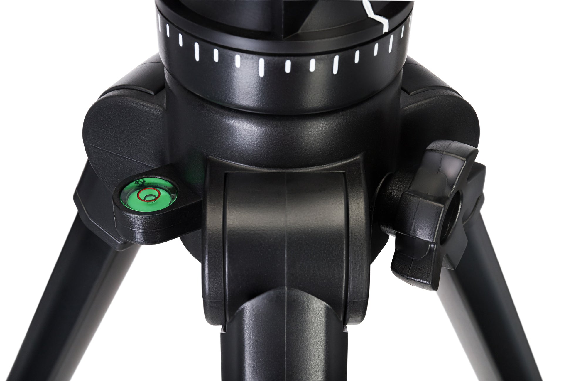 a ventaja del trípode Levenhuk Level PLUS VT20 reside en su sistema de amortiguación hidráulica, que proporciona un movimiento más suave del cabezal. Esto es esencial al grabar vídeo, ya que los clips se ven más atractivos, sin tirones ni cortes bruscos. El trípode es práctico, robusto y apto para cualquier equipo con rosca de 1/4".