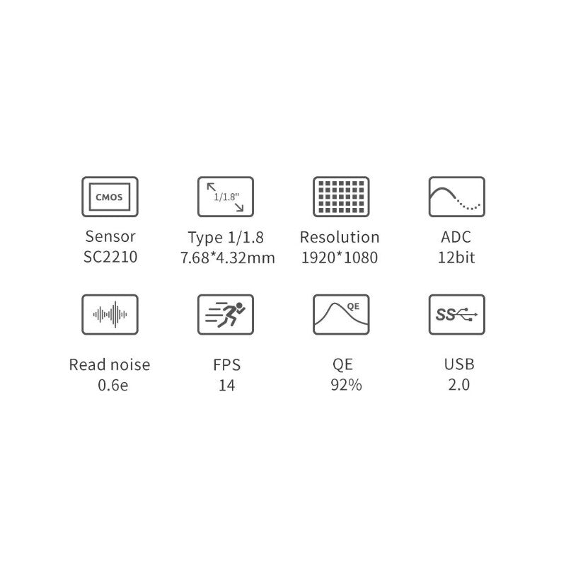 La ASI220MM Mini puede considerarse como una versión mejorada de la ASI290MM Mini, que incorpora un sensor de mayor formato y Pixel más grandes con mejor sensibilidad NIR.